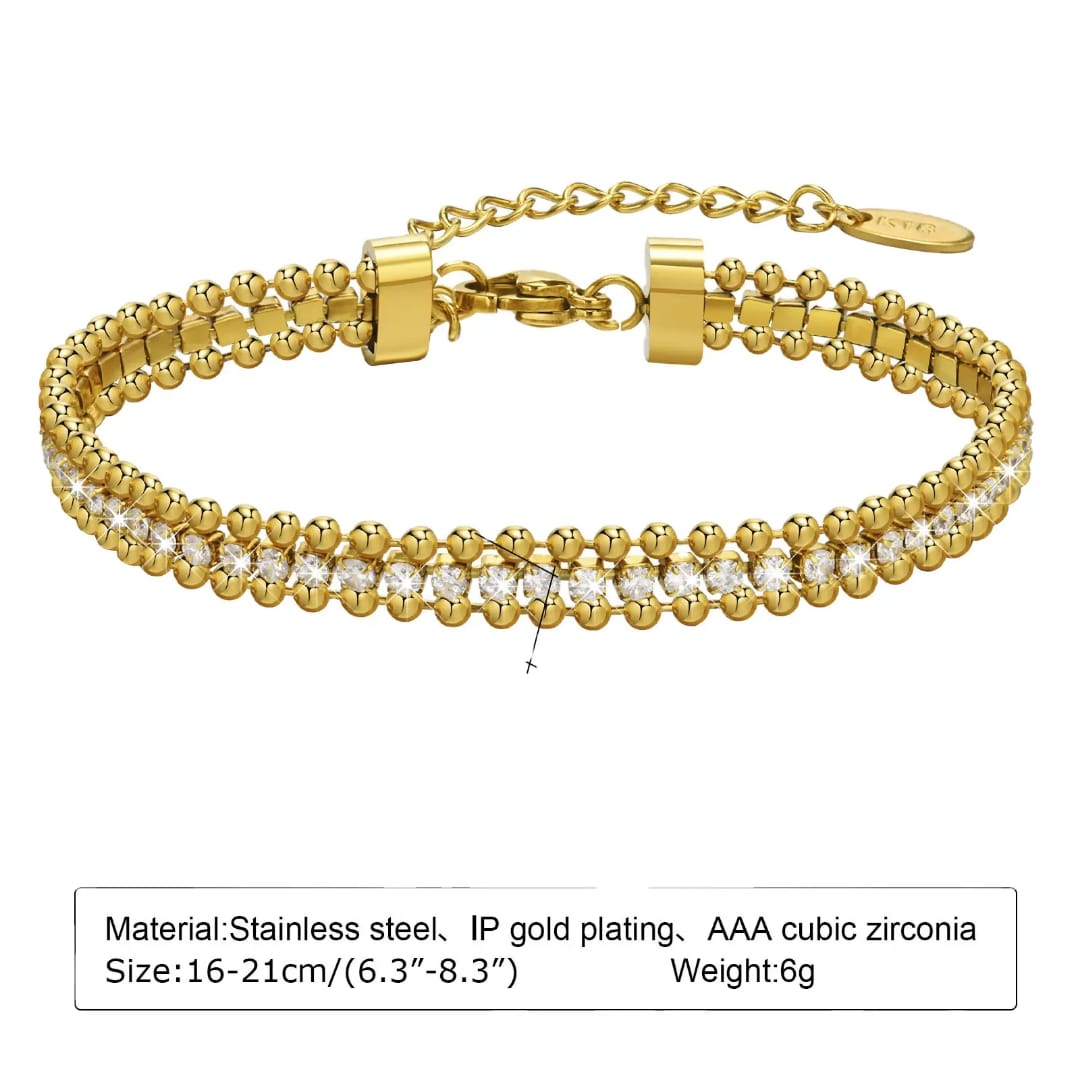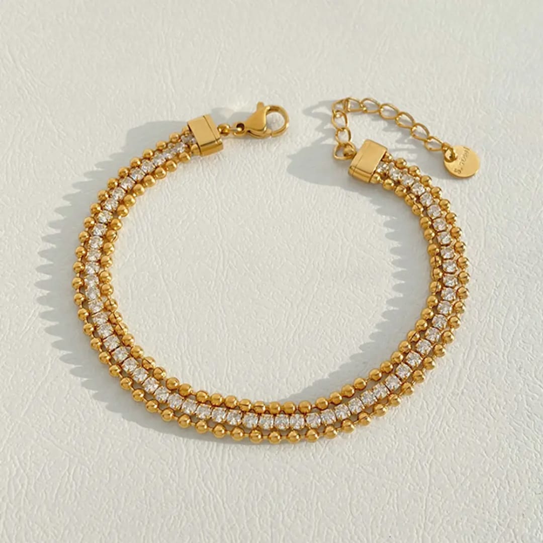 A Mini Golden Balls Diamond Bracelet features delicate golden beads accented with sparkling diamonds. Its elegant design adds a subtle touch of luxury and sophistication to any outfit.