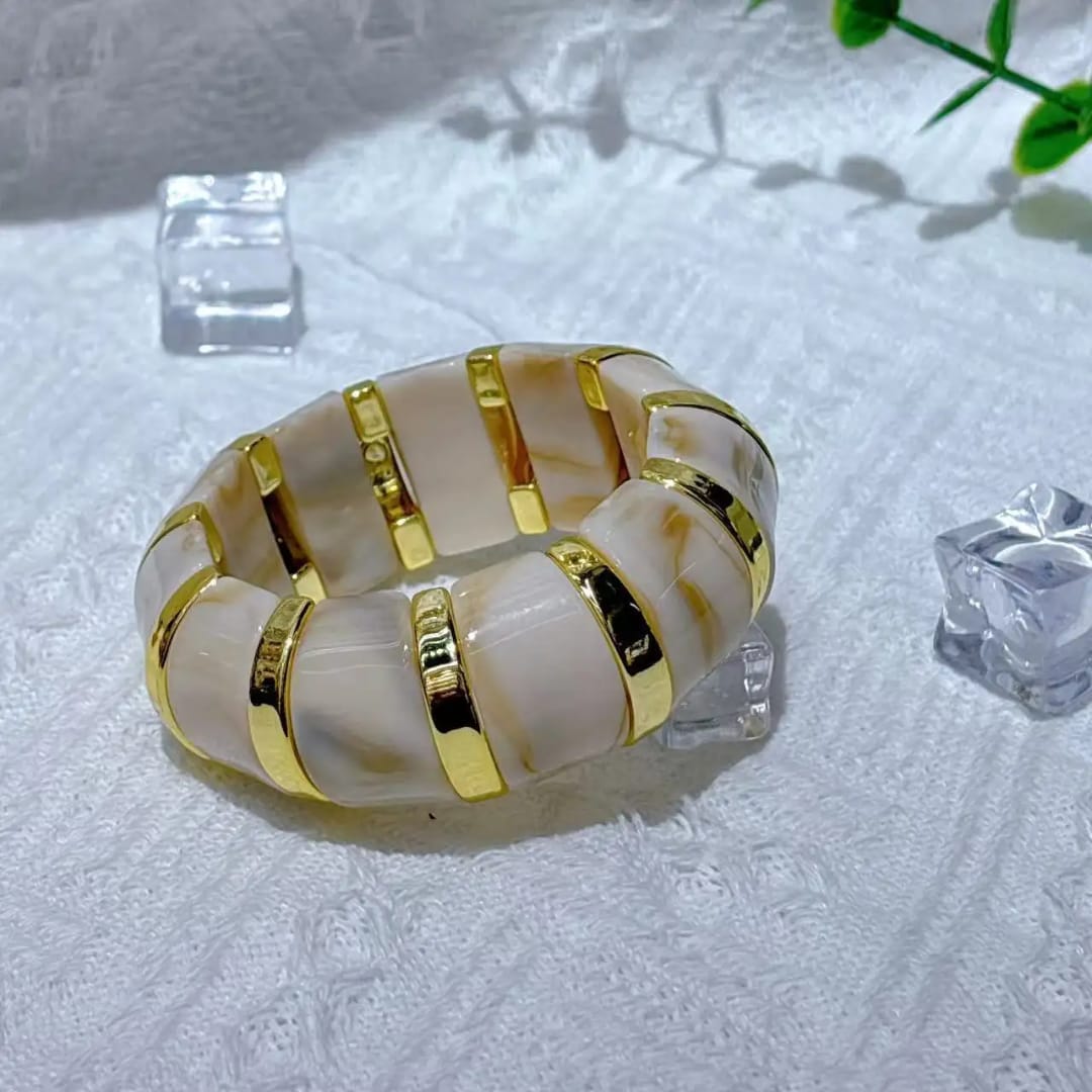 A Resin Petal Bead Bracelet features delicate, colorful resin beads shaped like petals. Its lightweight and playful design adds a charming, artistic touch to any outfit.