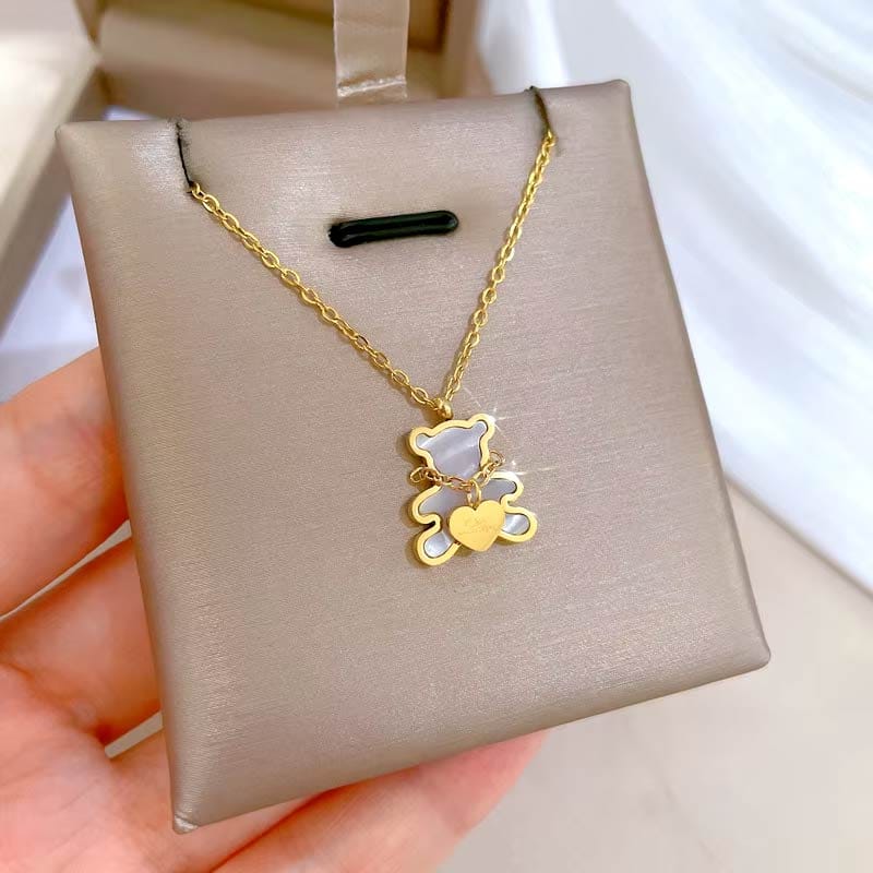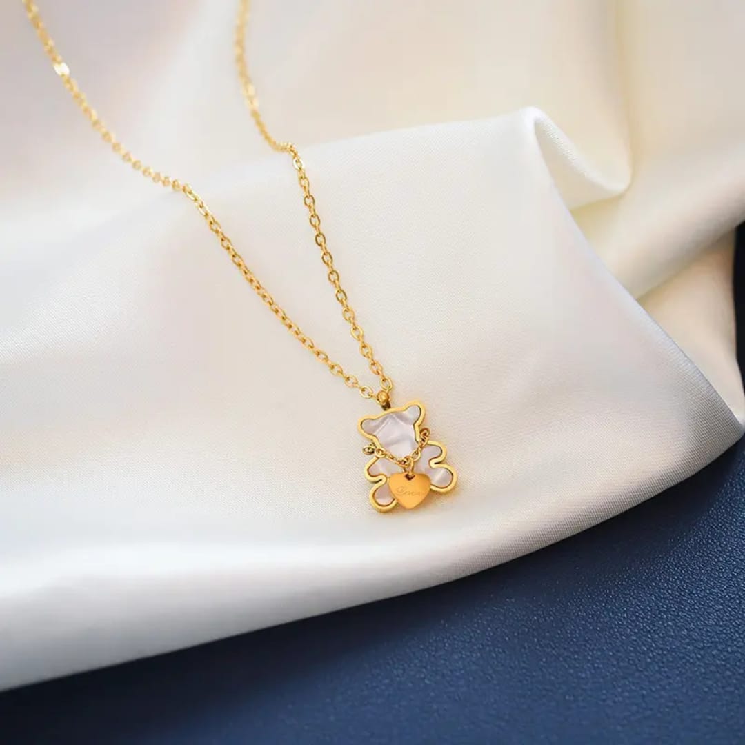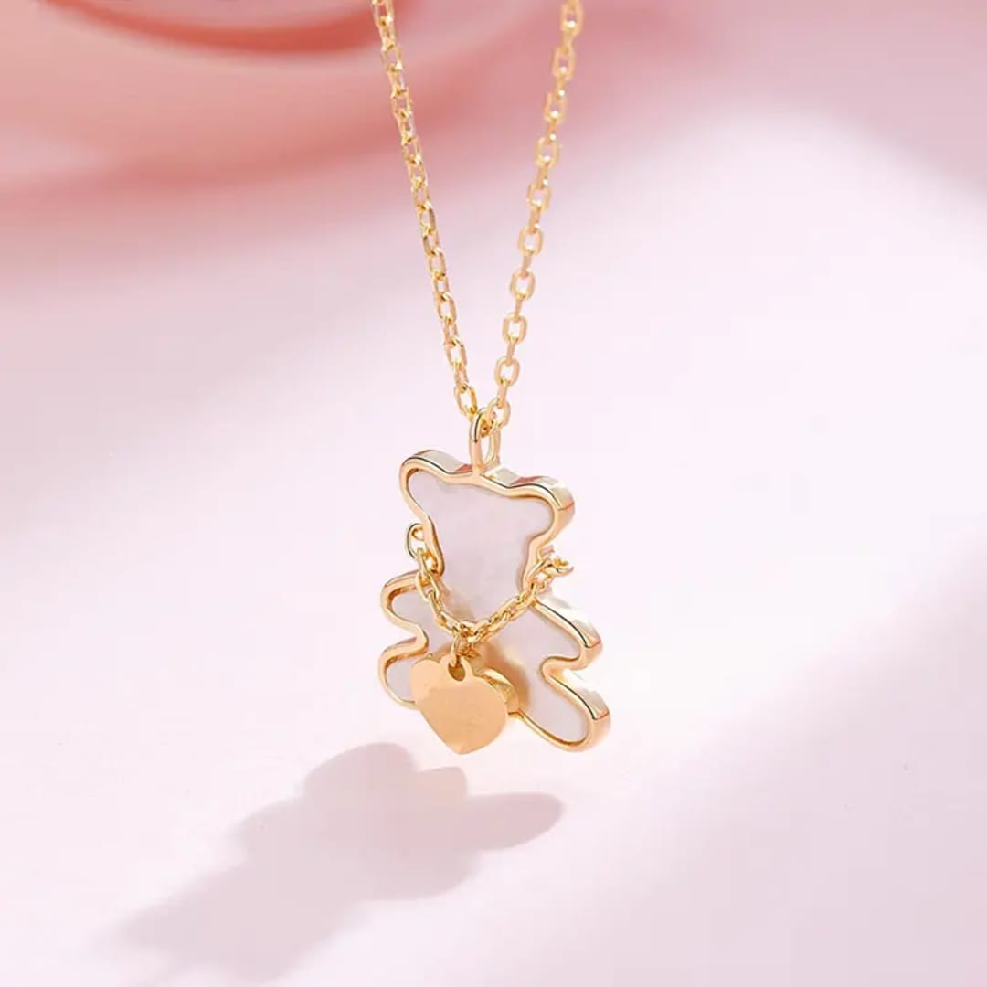 A charming necklace featuring a gold teddy bear pendant, symbolizing affection and warmth, perfect for a cute and heartfelt accessory.