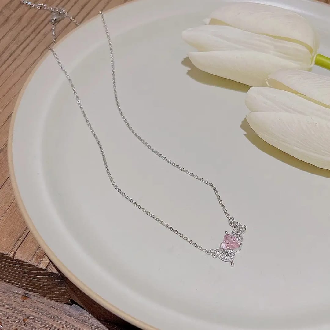 Charming pendant necklace featuring a sparkling love heart design.Perfect for expressing affection and adding a romantic touch to any outfit.