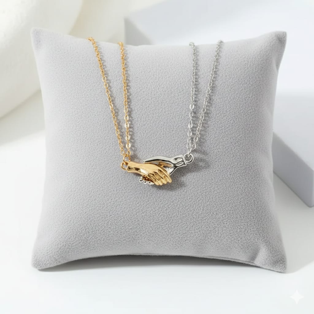 Stylish couple necklace featuring interlocking magnets for a unique handshake design.Perfect for symbolizing connection and togetherness in a modern, meaningful way.
