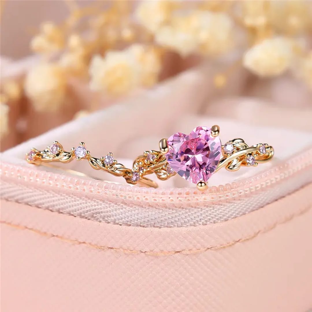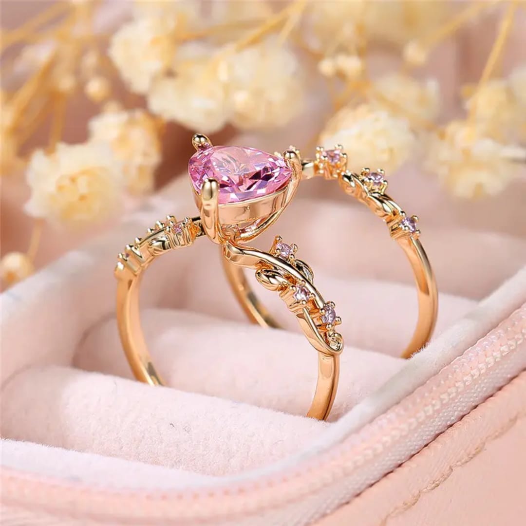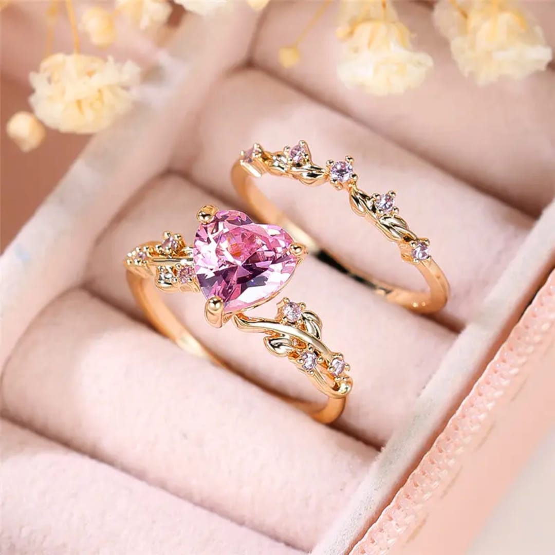 Charming couple ring featuring a sparkling pink diamond, symbolizing love and affection.Perfect for celebrating your bond with a romantic and elegant touch.