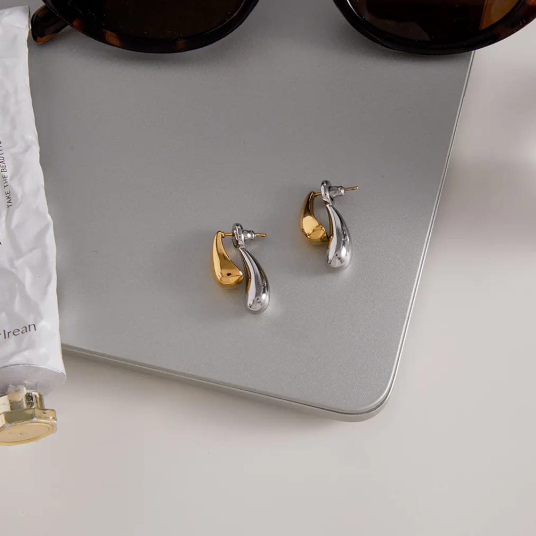 Silver and Gold Double Drop Earrings feature a sleek two-tone design that blends the cool elegance of silver with the warm glow of gold.