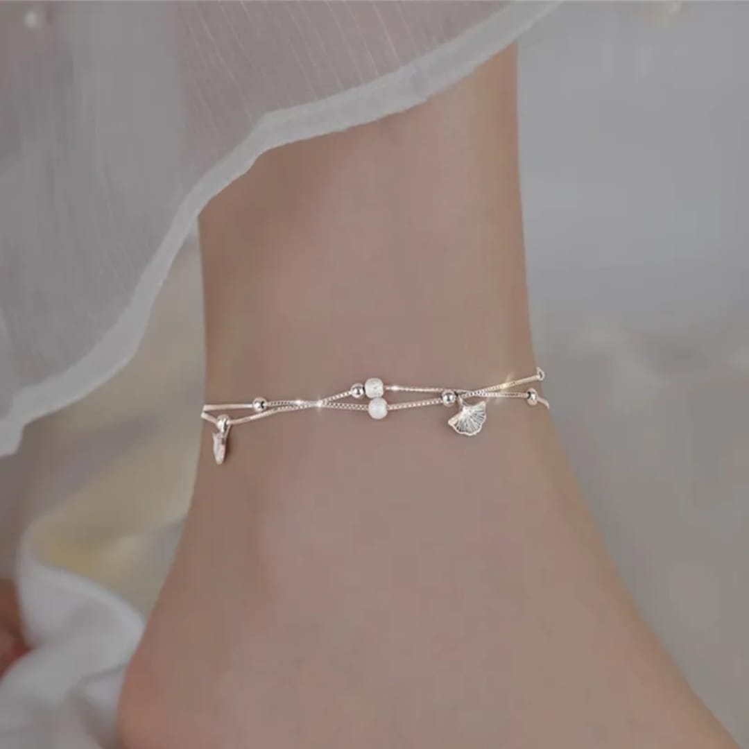 Charming silver anklet adorned with tiny shell-shaped balls for a beachy, playful vibe.Perfect for adding subtle sparkle and summer-inspired style to any look.