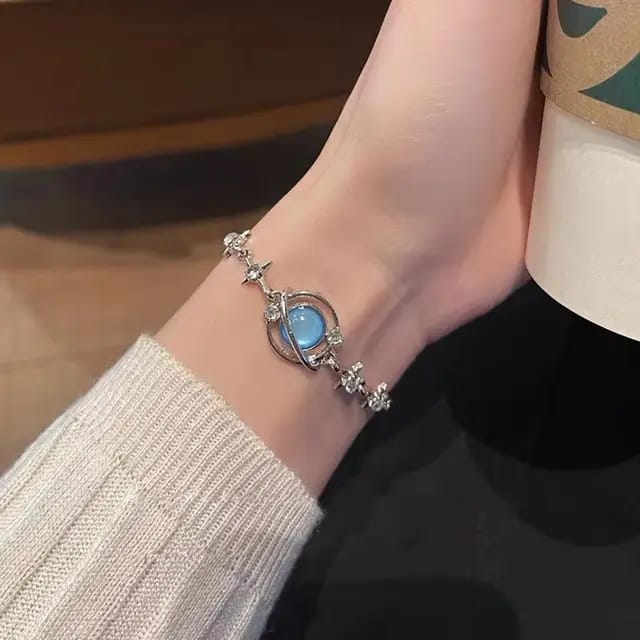 A Blue Stone Korean Bracelet features a vibrant blue gemstone set in a sleek, minimalist design inspired by Korean fashion trends. Its stylish elegance makes it perfect for everyday wear or special occasions.