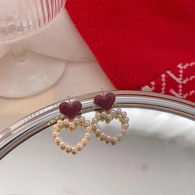 Vibrant red heart-shaped earrings for a playful and romantic look.Bold and charming, perfect for adding a pop of color to any outfit.