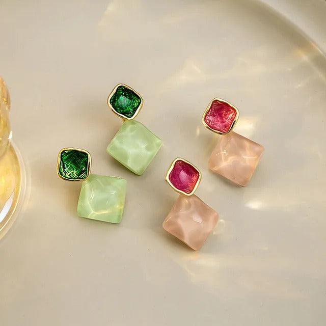 Elegant Western-style earrings featuring sparkling rhombus-shaped crystals for a modern, chic look.Stylish and eye-catching, perfect for adding a touch of glamour to any outfit.