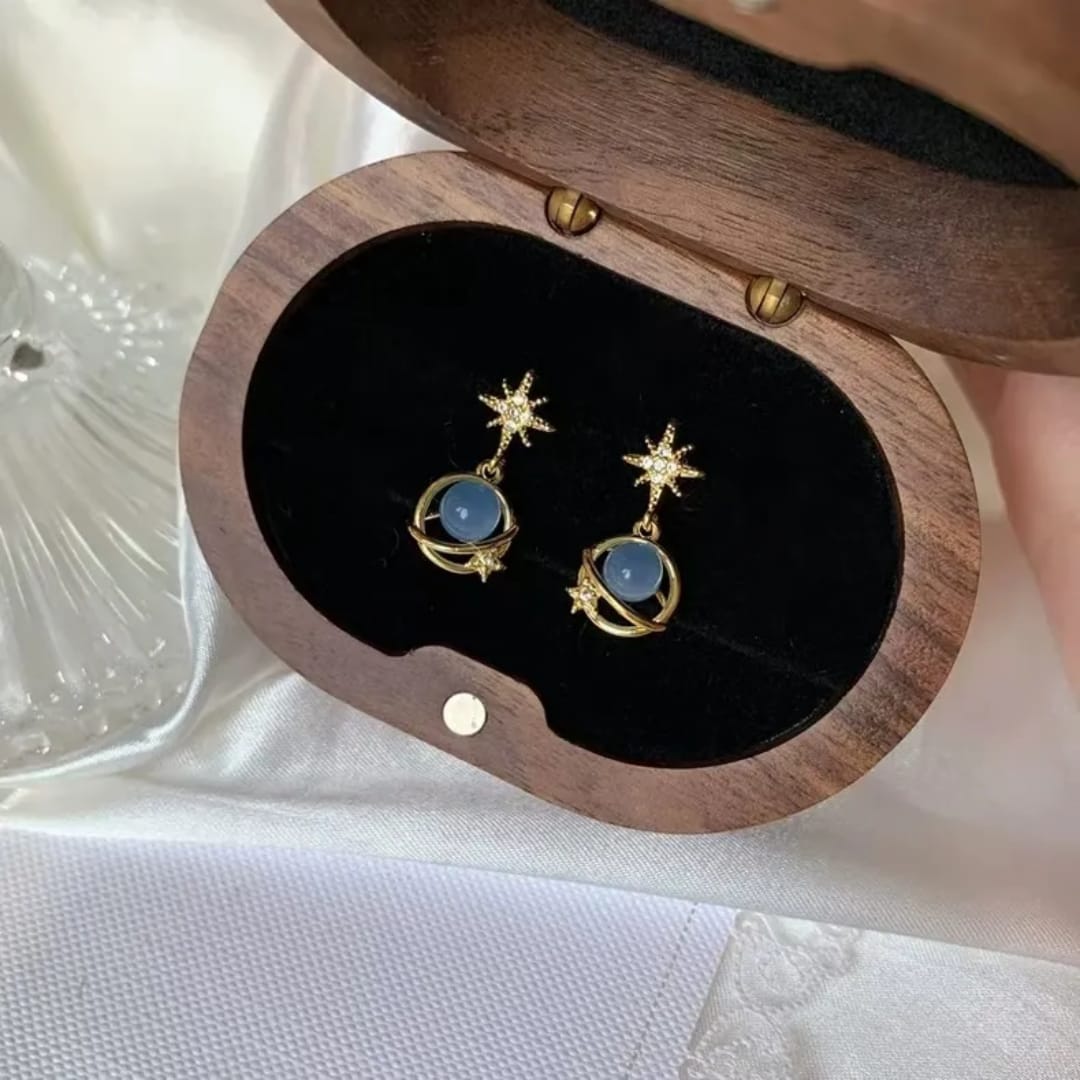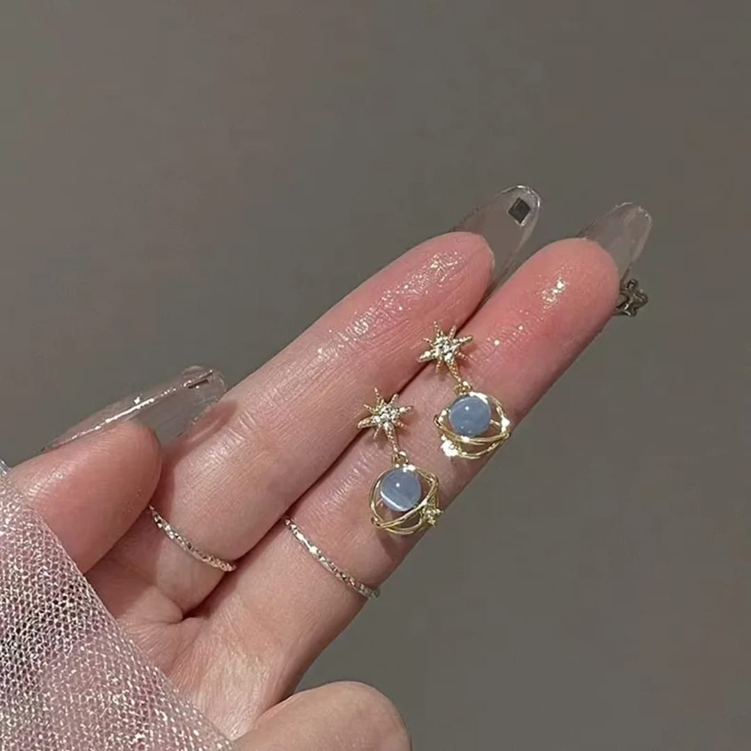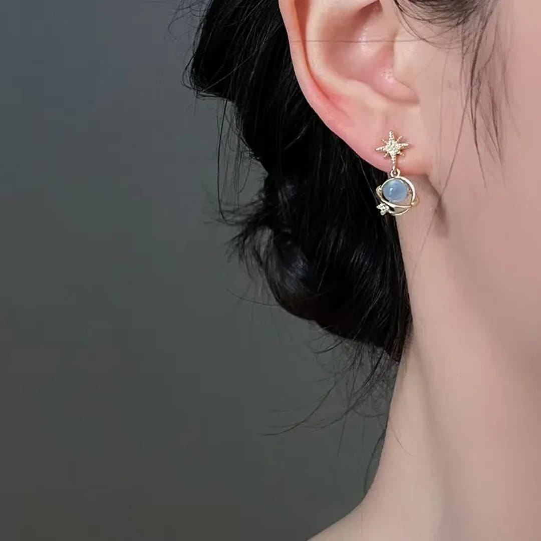 Unique earrings inspired by Saturn, featuring a planetary design that adds a cosmic and stylish flair to any look.