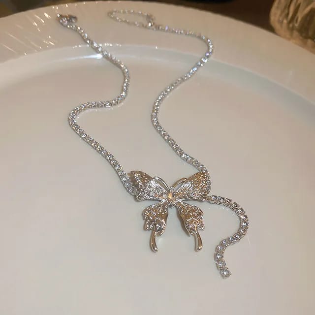 A sparkling butterfly pendant adorned with crystal zircon stones for radiant shine.Elegant, feminine, and perfect for adding a touch of sparkle to any outfit