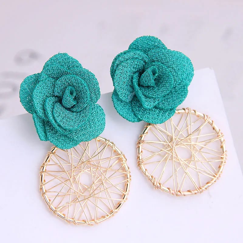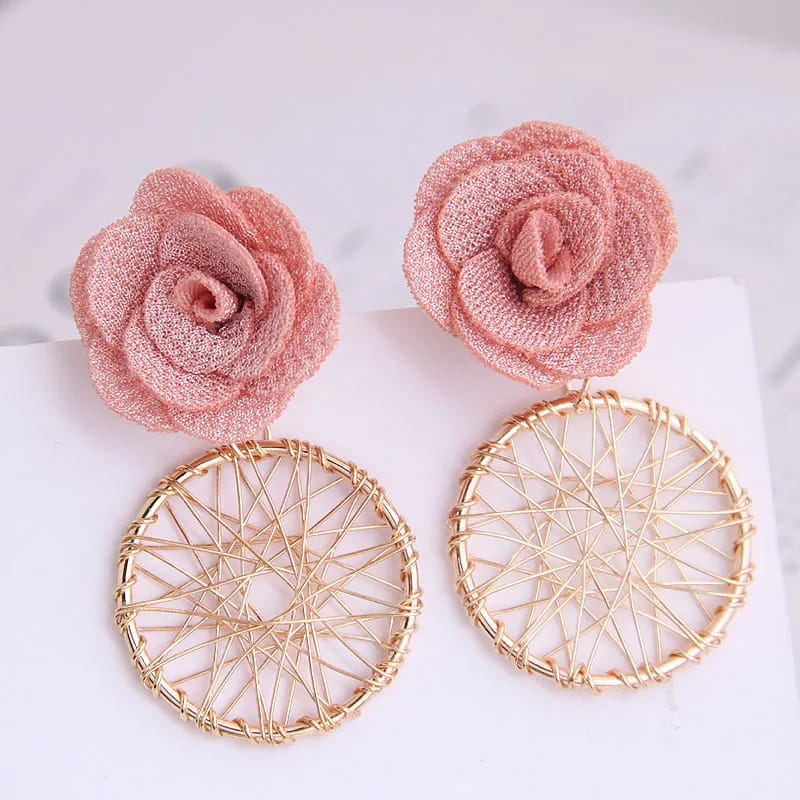 Simple gold-tone hoops with a white flower charm very versatile and delicate. Korean-style floral detailing on the hoop — more pronounced and decorative.