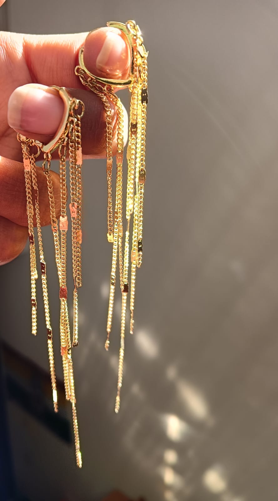 Sleek golden straight hanging earrings that offer a minimalist yet elegant look. Perfect for adding a touch of sophistication to any outfit.