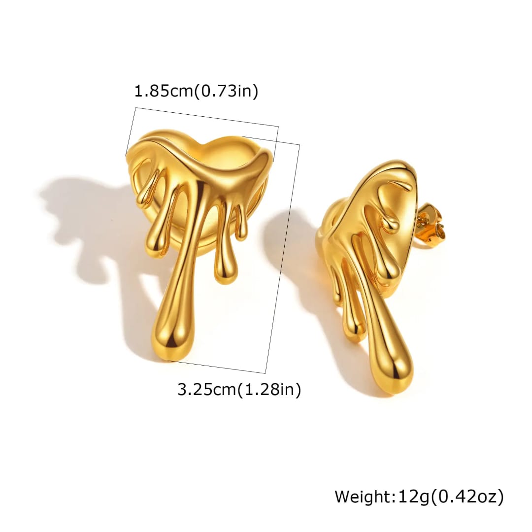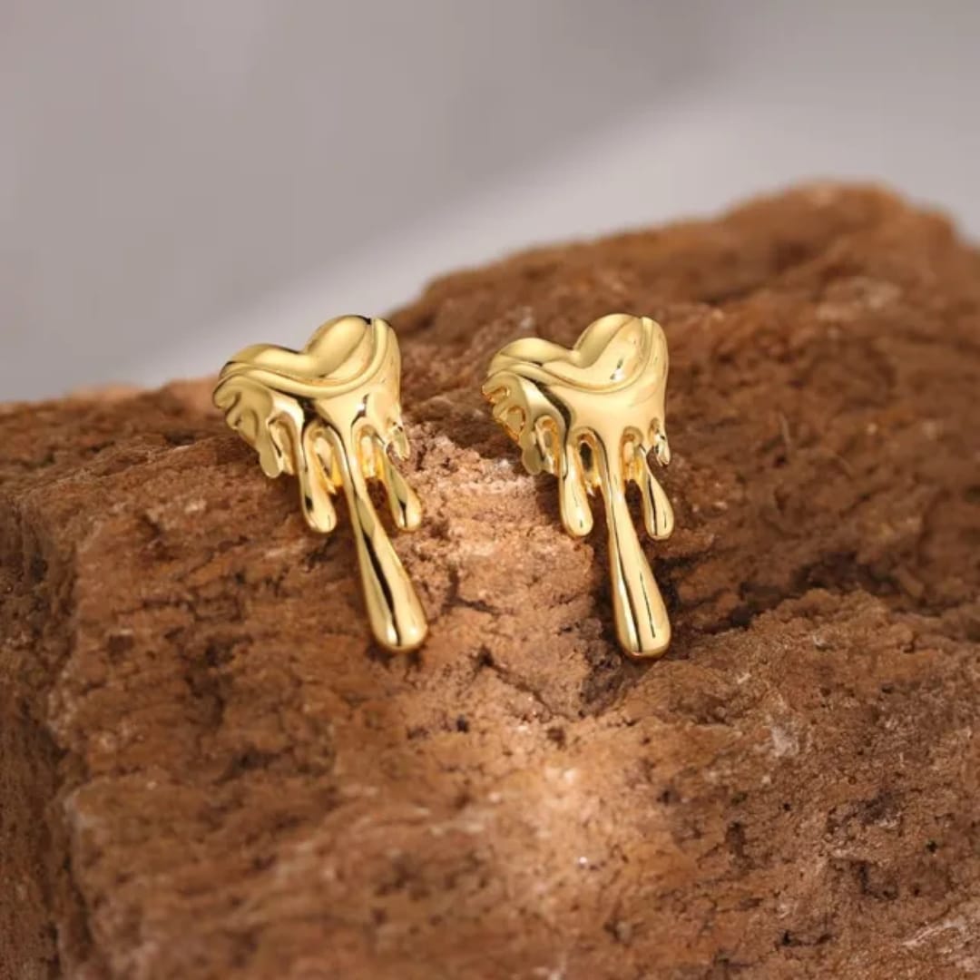 Trendy earrings featuring a unique melting heart design in chic metallic finish.
