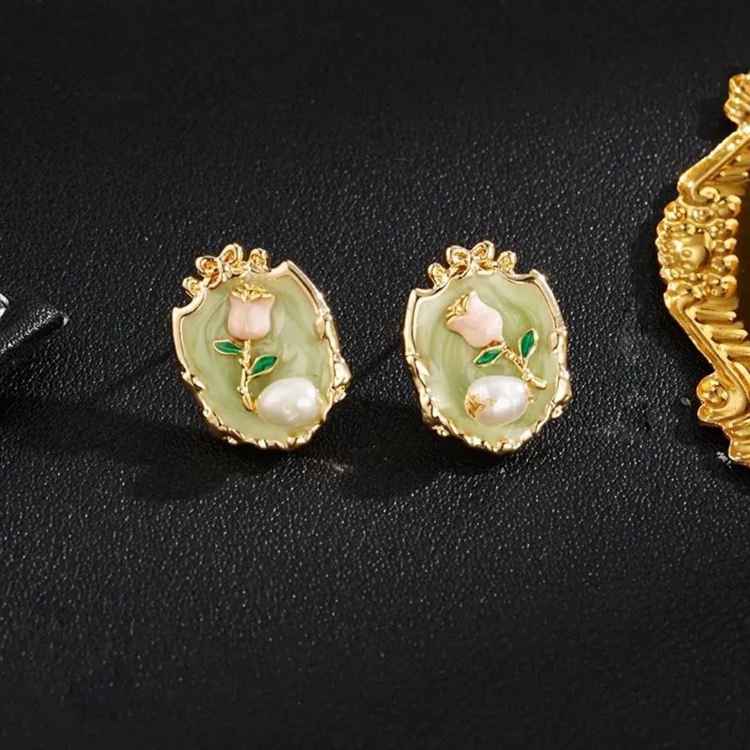 Handcrafted earrings featuring vibrant, oil-painted floral designs.Lightweight and elegant, perfect for adding a pop of color to any outfit.