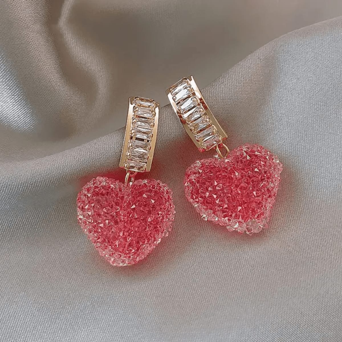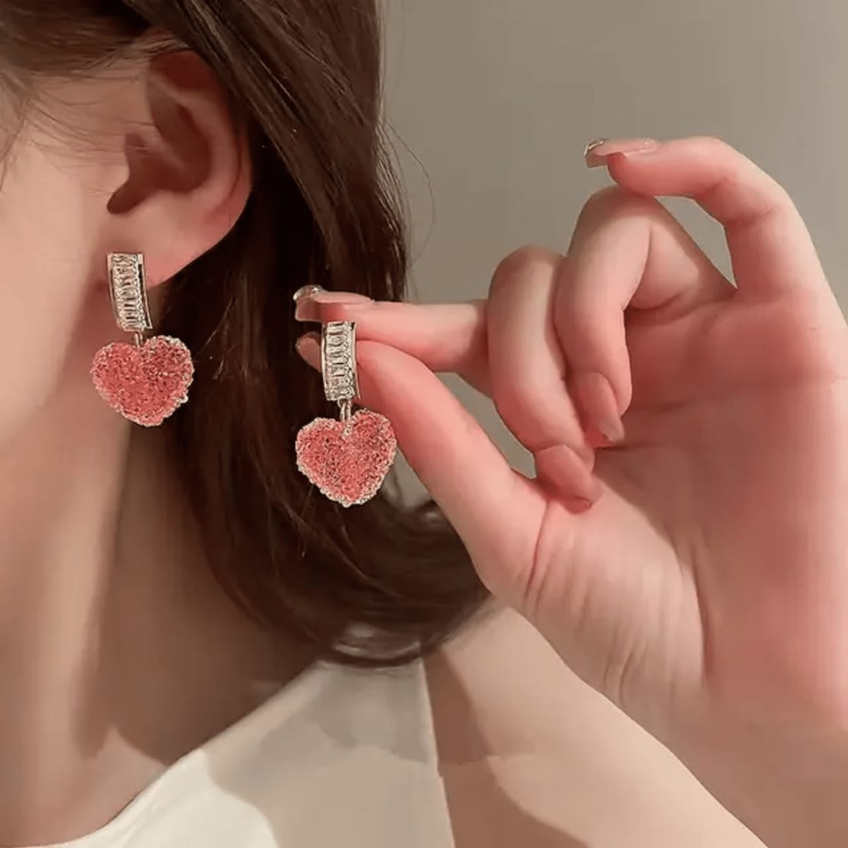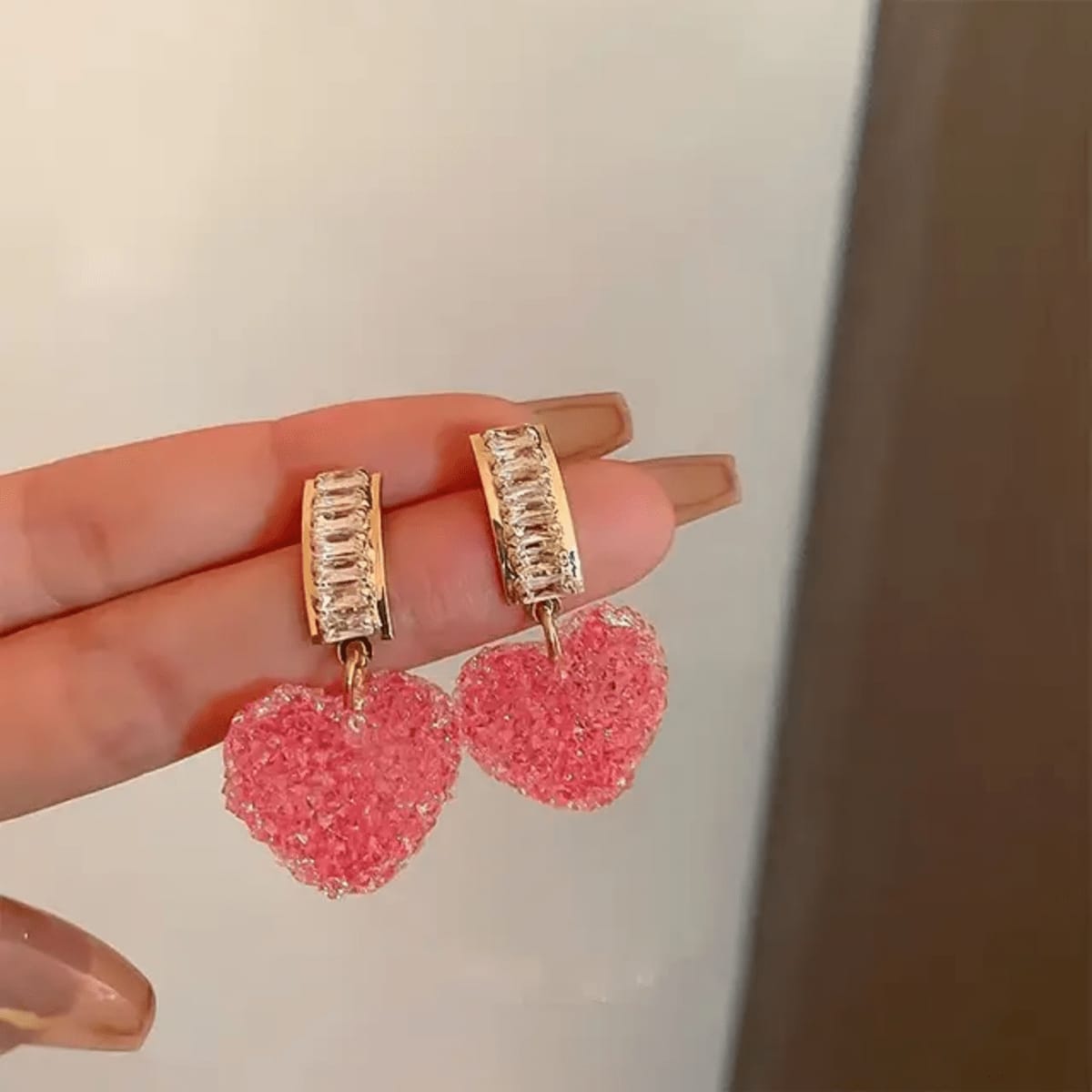 Cute Korean earrings featuring pink heart designs for a playful and charming look.Lightweight and adorable, perfect for adding a sweet touch to any outfit.
