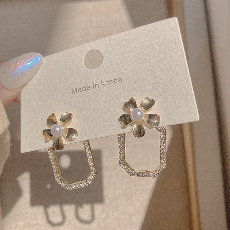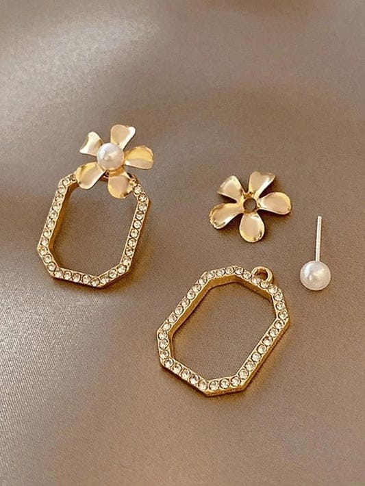Versatile three-way earrings featuring delicate flowers and lustrous pearls.Wear them multiple ways to suit any outfit, from casual to elegant.