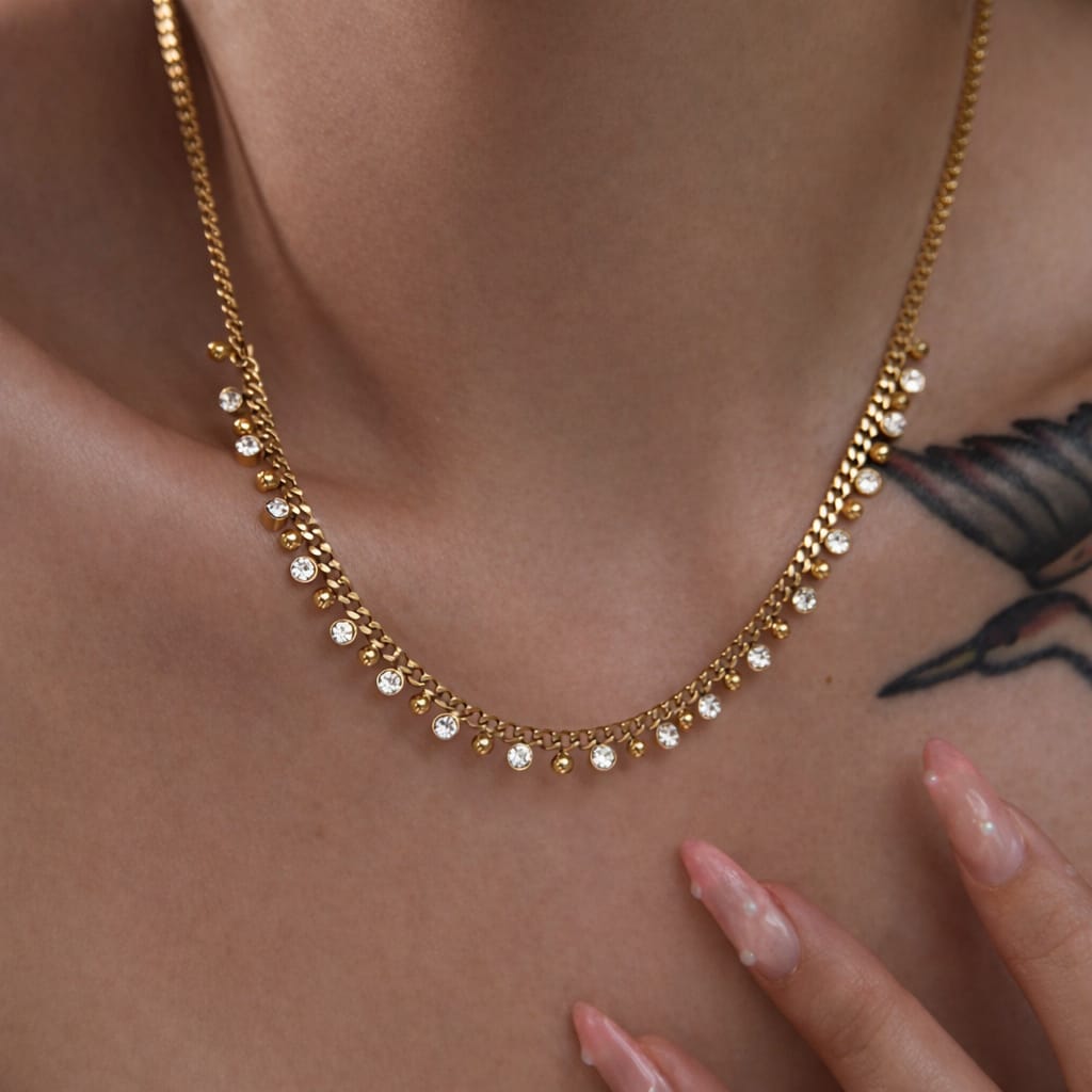 A stylish gold-plated necklace featuring a polished stone for timeless elegance.Perfect for adding a subtle pop of color and sophistication to any outfit.