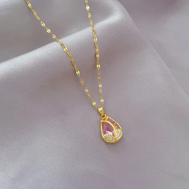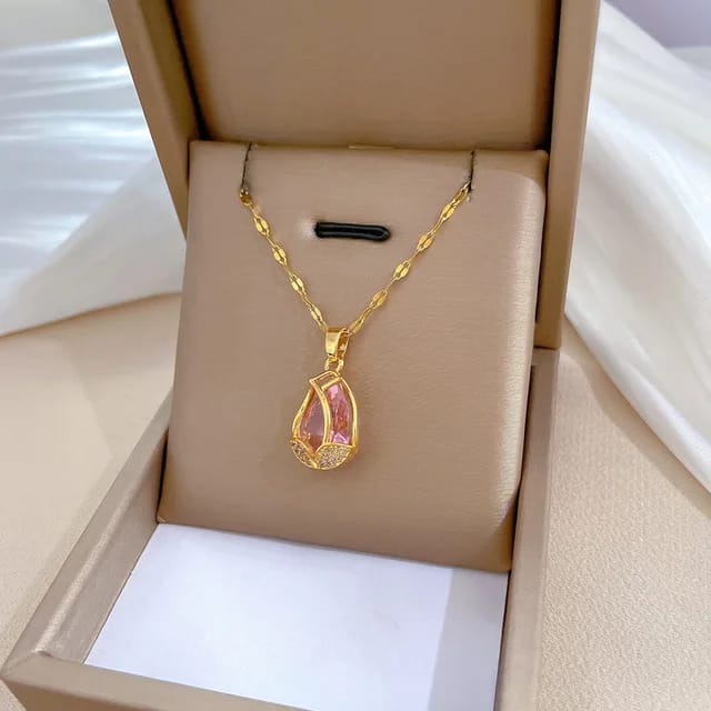 A dainty tulip-shaped pendant with soft pink enamel on a durable stainless-steel chain, creating a sweet and graceful floral accent